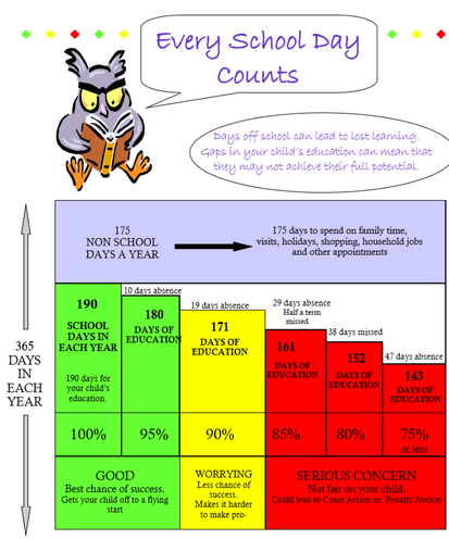 Attendance is a legal requirement and parents should not take leave during term time. “Every Day Counts”, so please respect this, making medical appointments out of school time wherever possible, as your child will have gaps in their education whenever they are absent. Only in the most exceptional circumstances can holidays during term time be requested and Mrs Currie will require to meet with you to discuss  whether or not to authorise the leave.