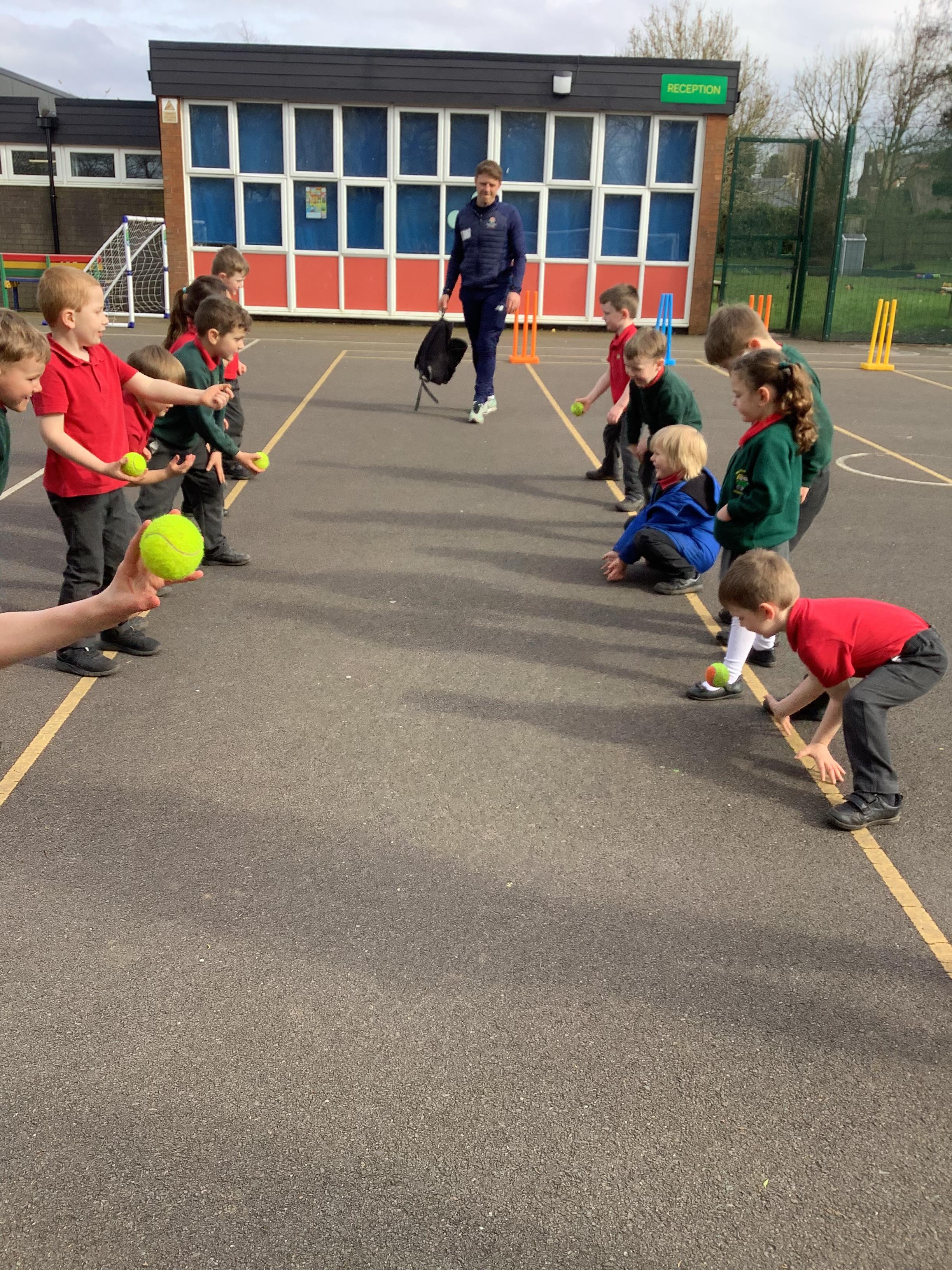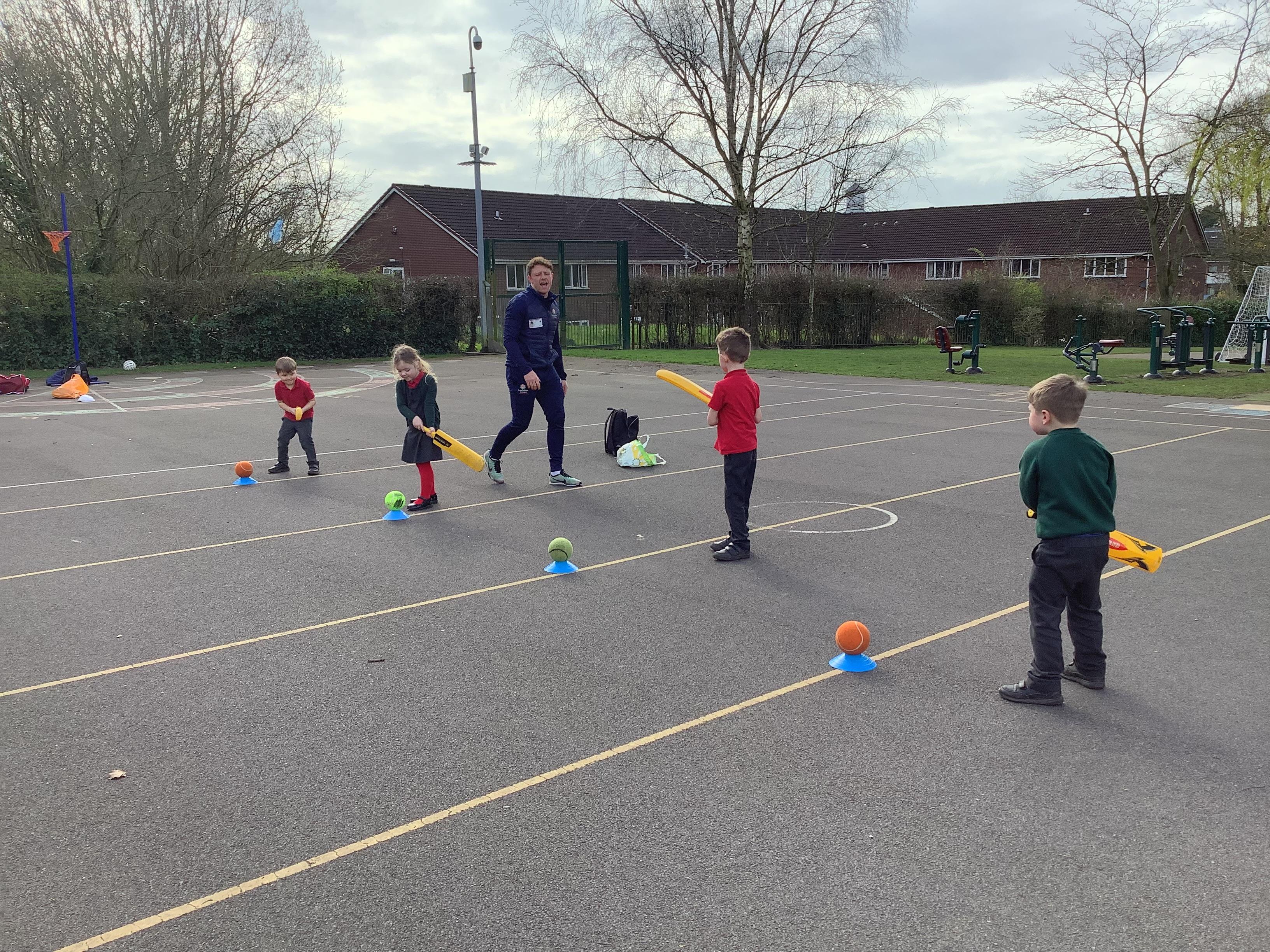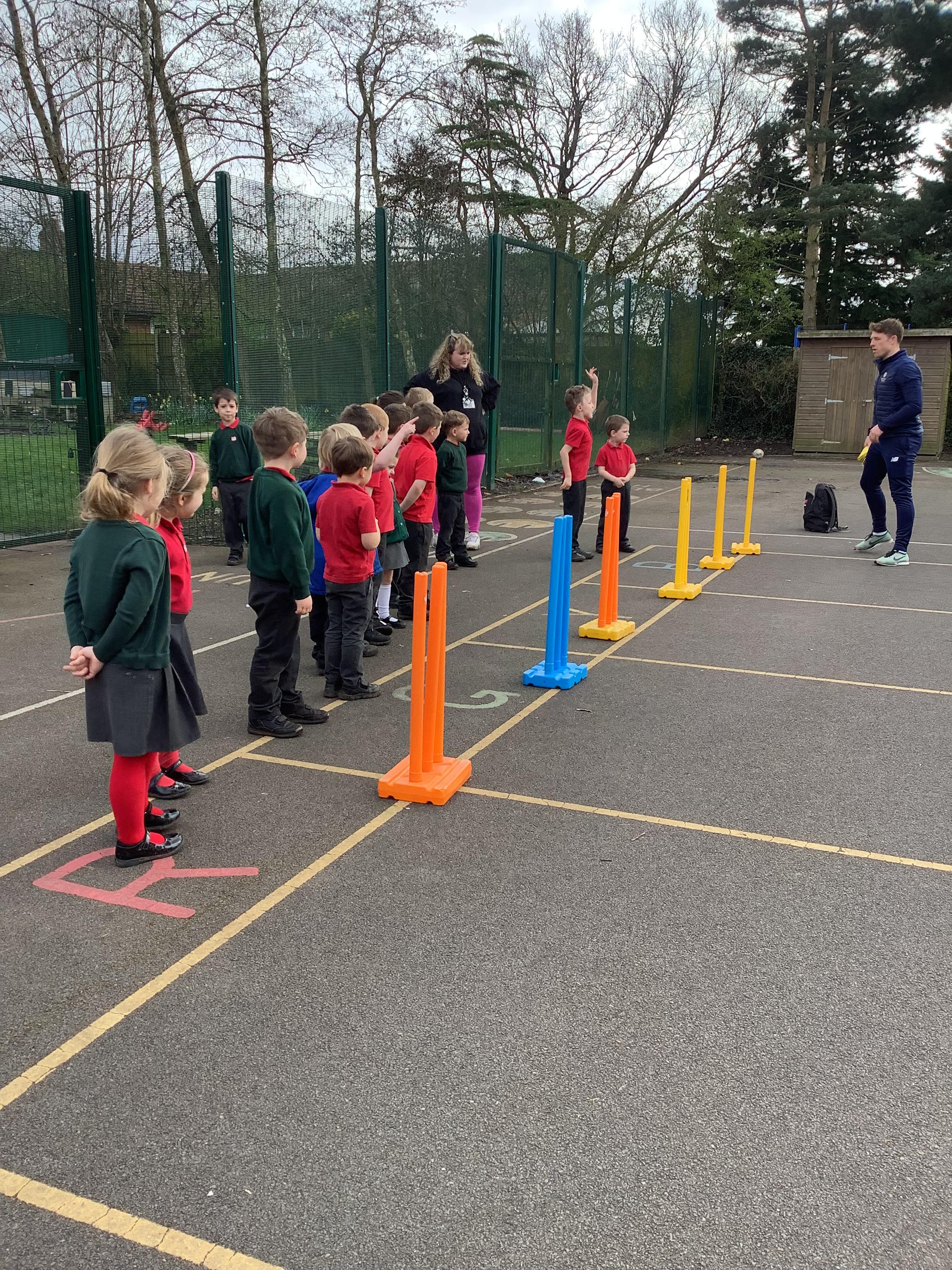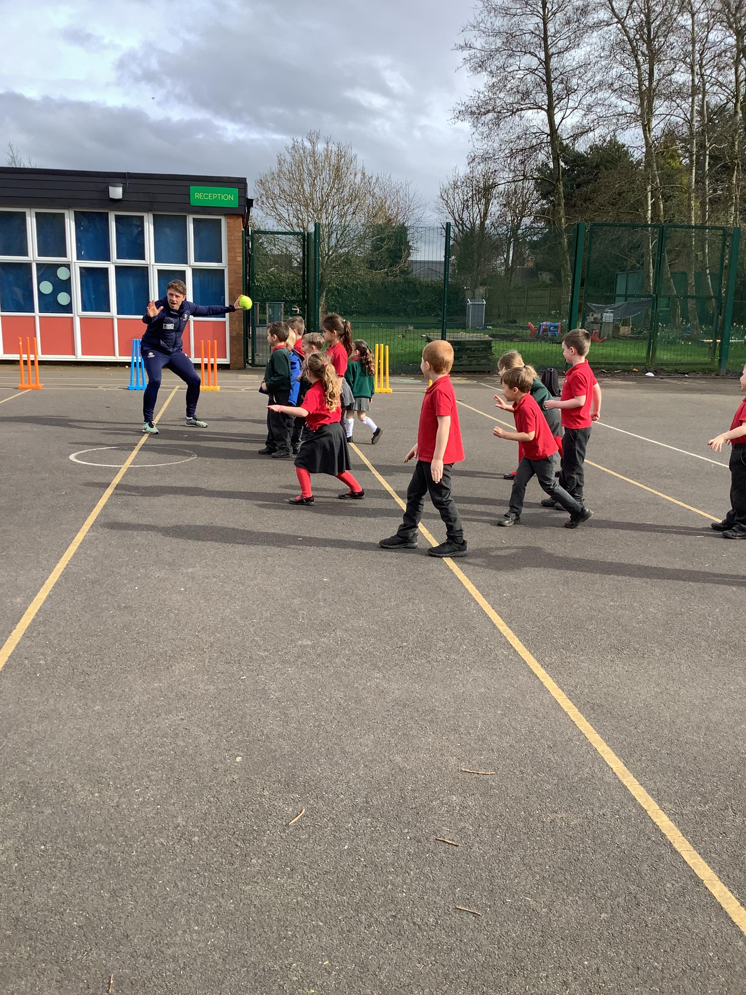 Cricket time! Jordan from Lancashire Cricket spent the day with us teaching all of us how to play cricket!
