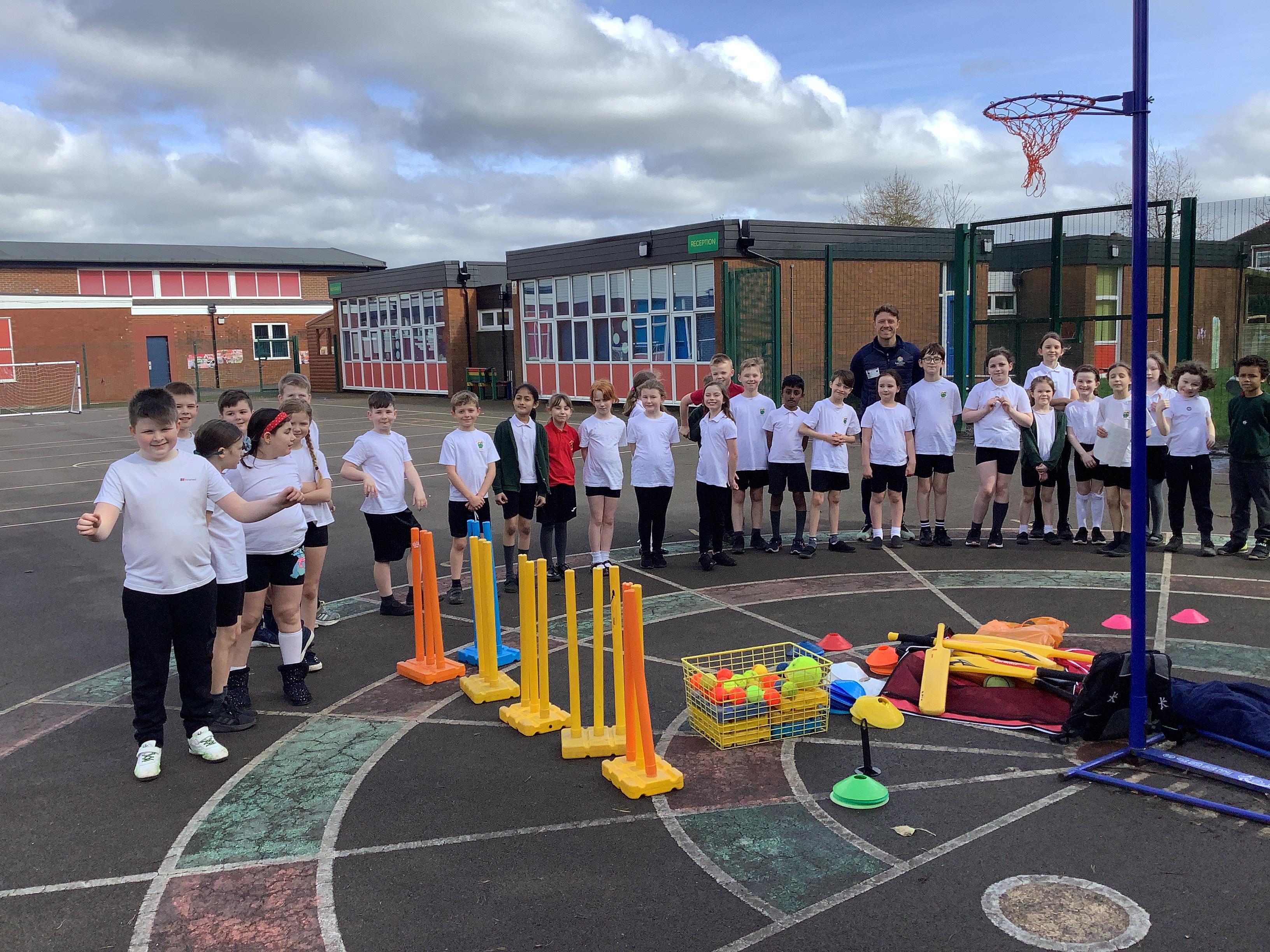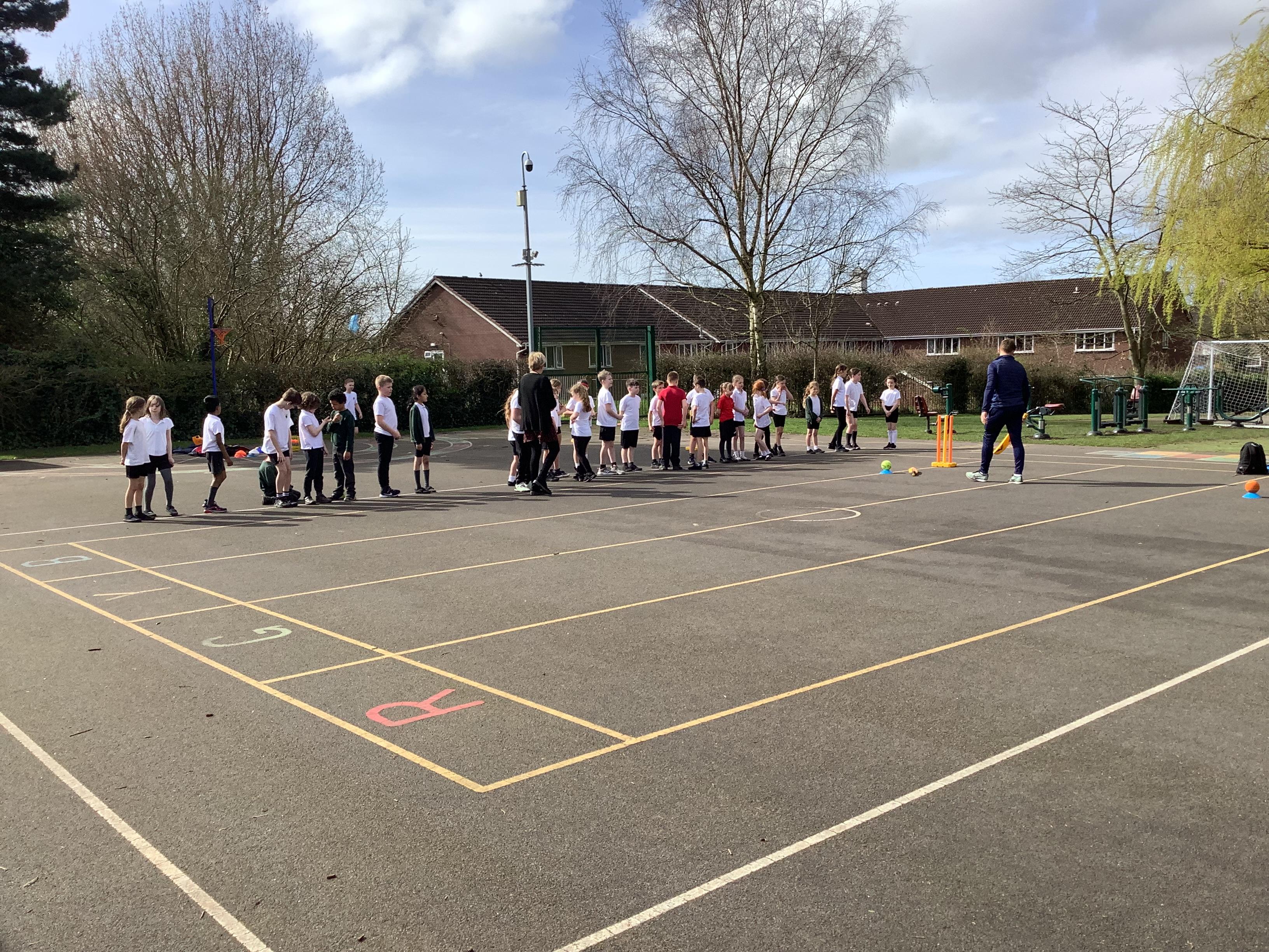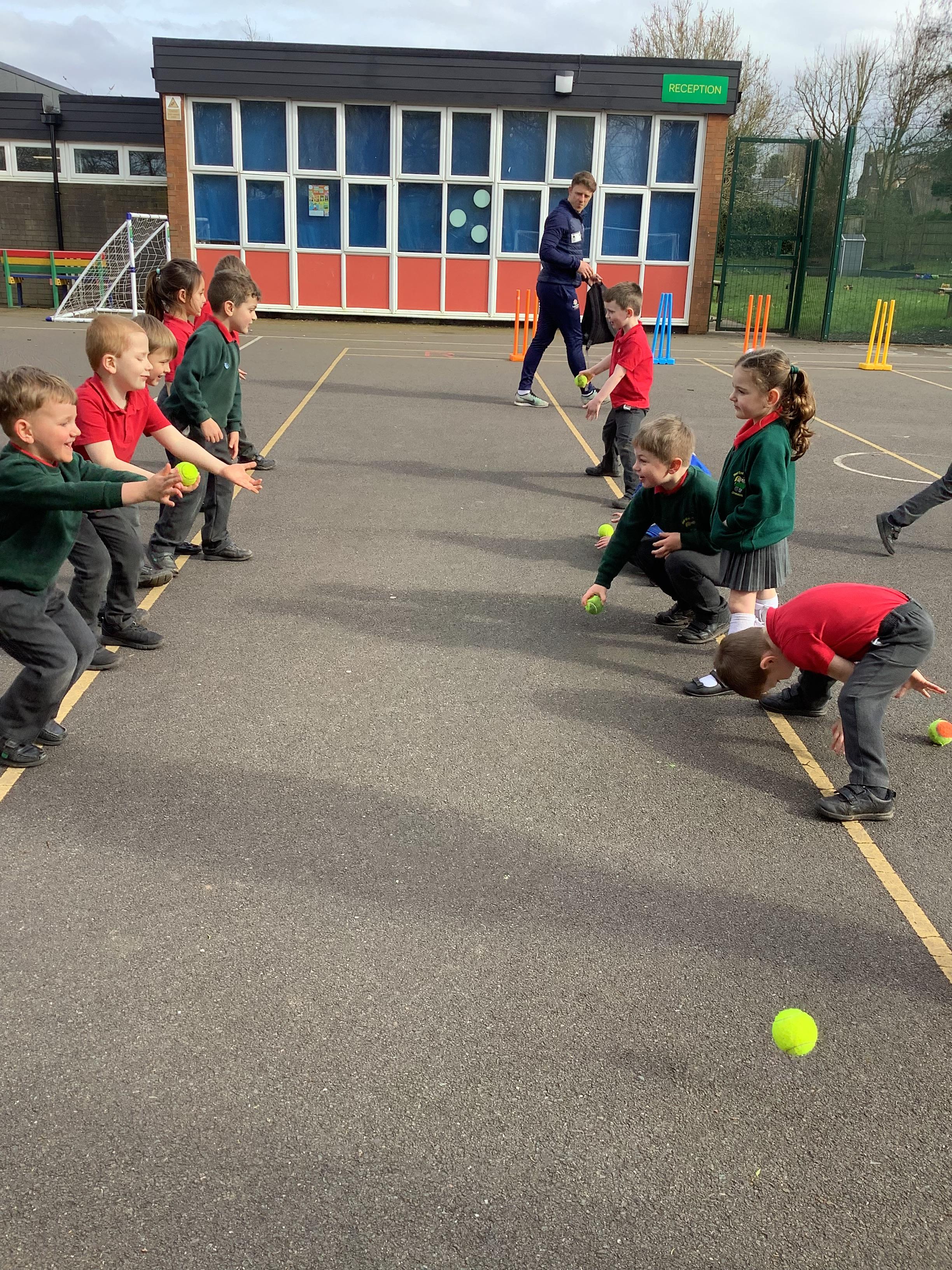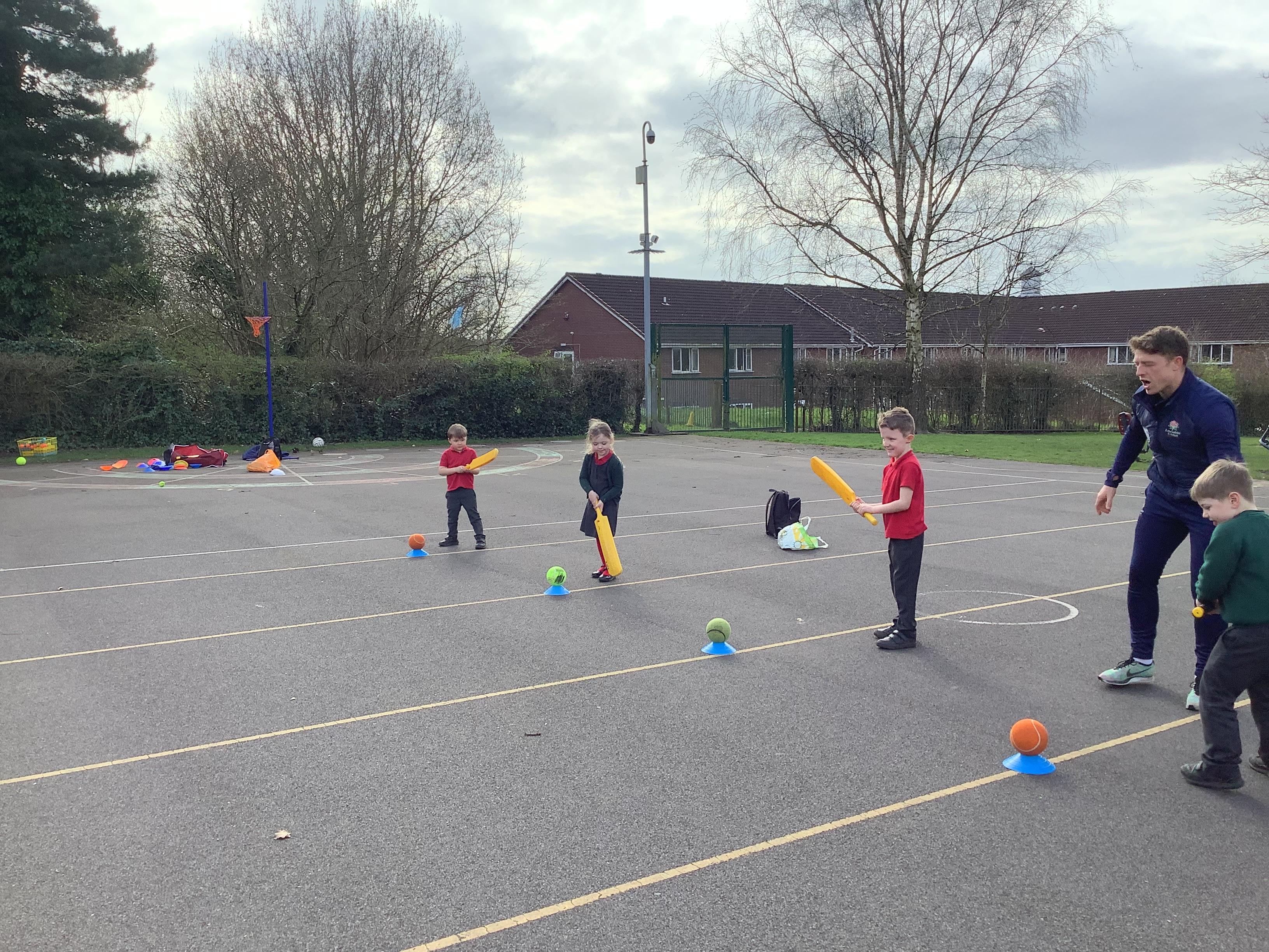 Cricket time! Jordan from Lancashire Cricket spent the day with us teaching all of us how to play cricket!
