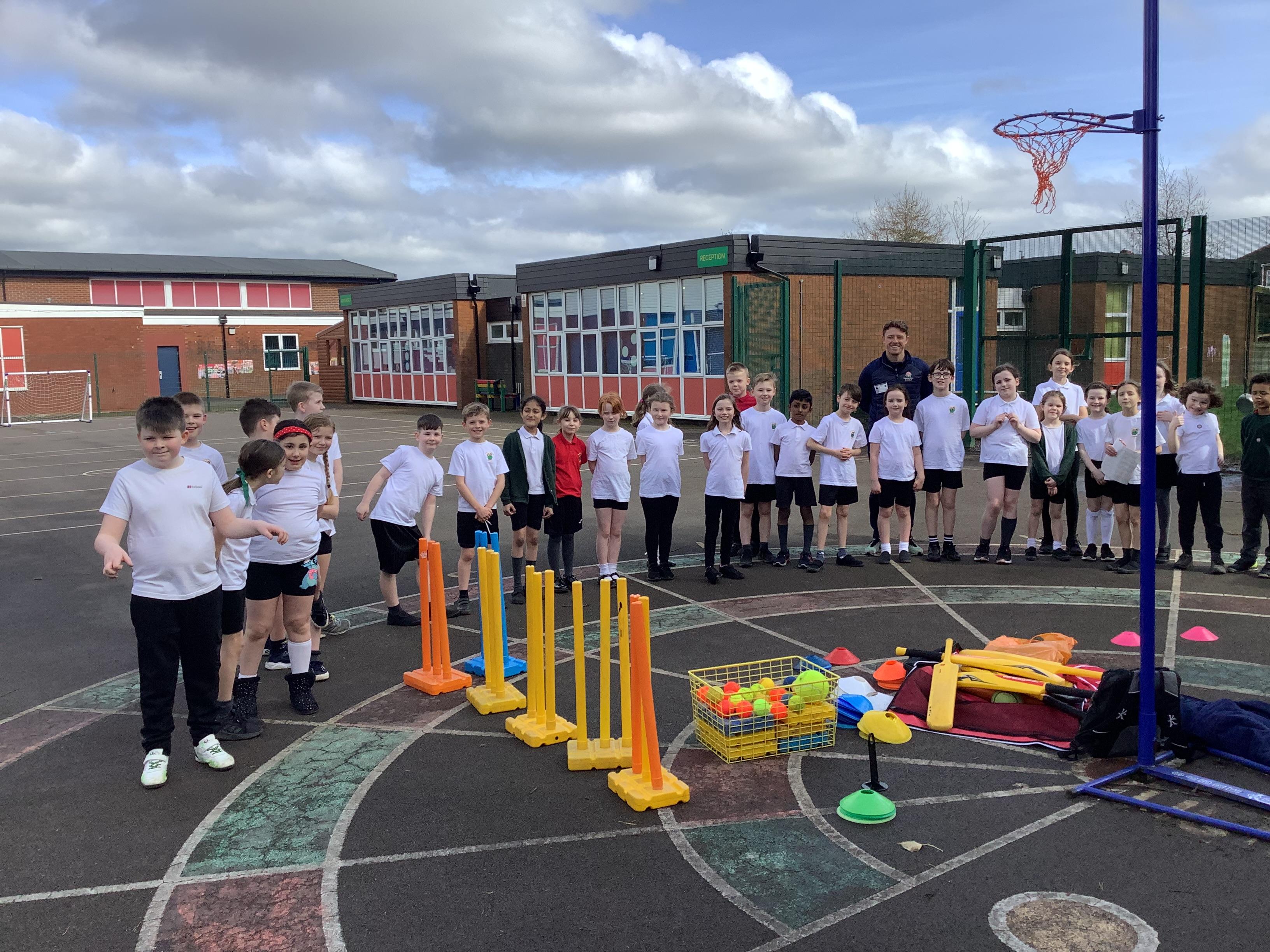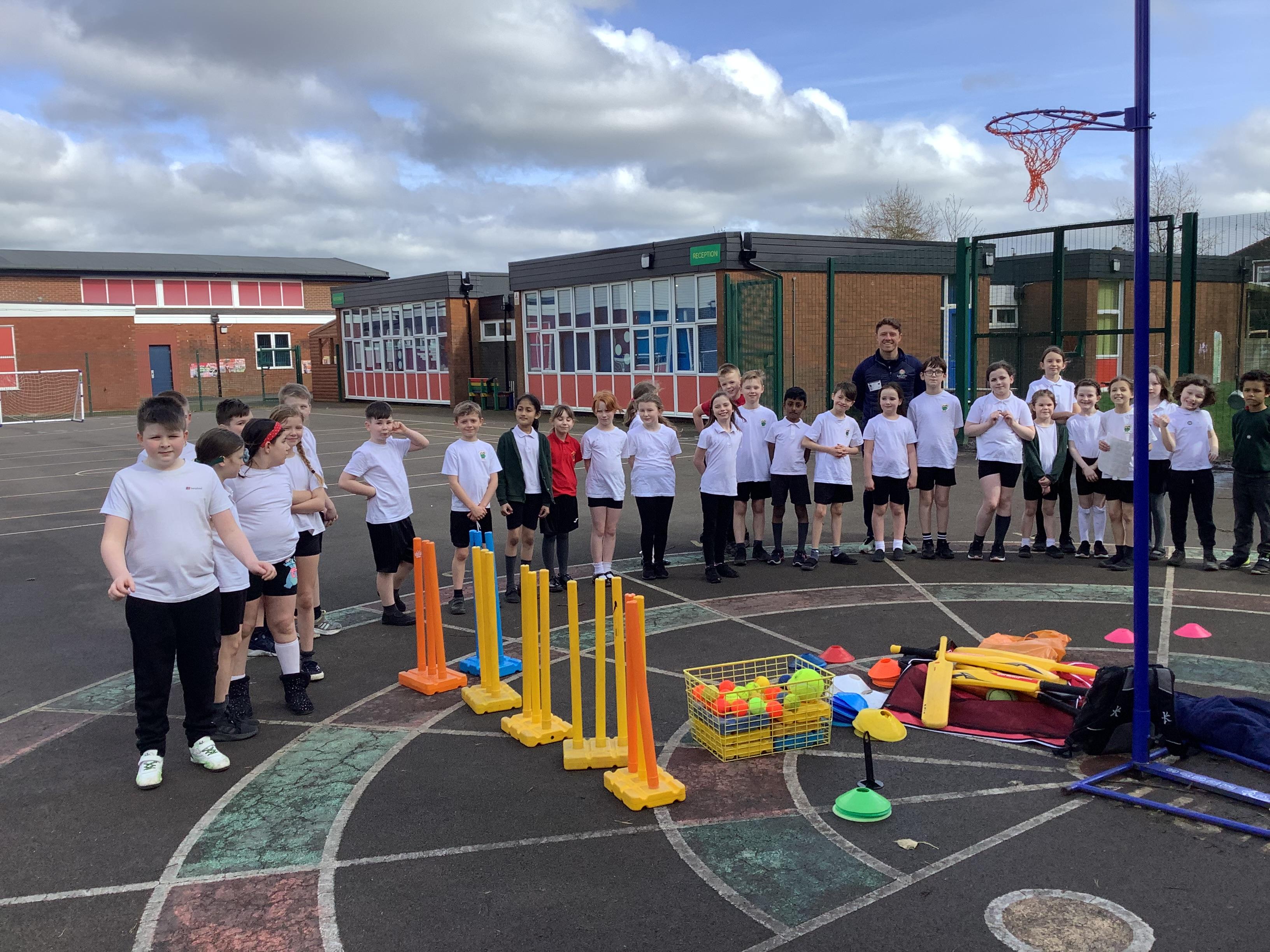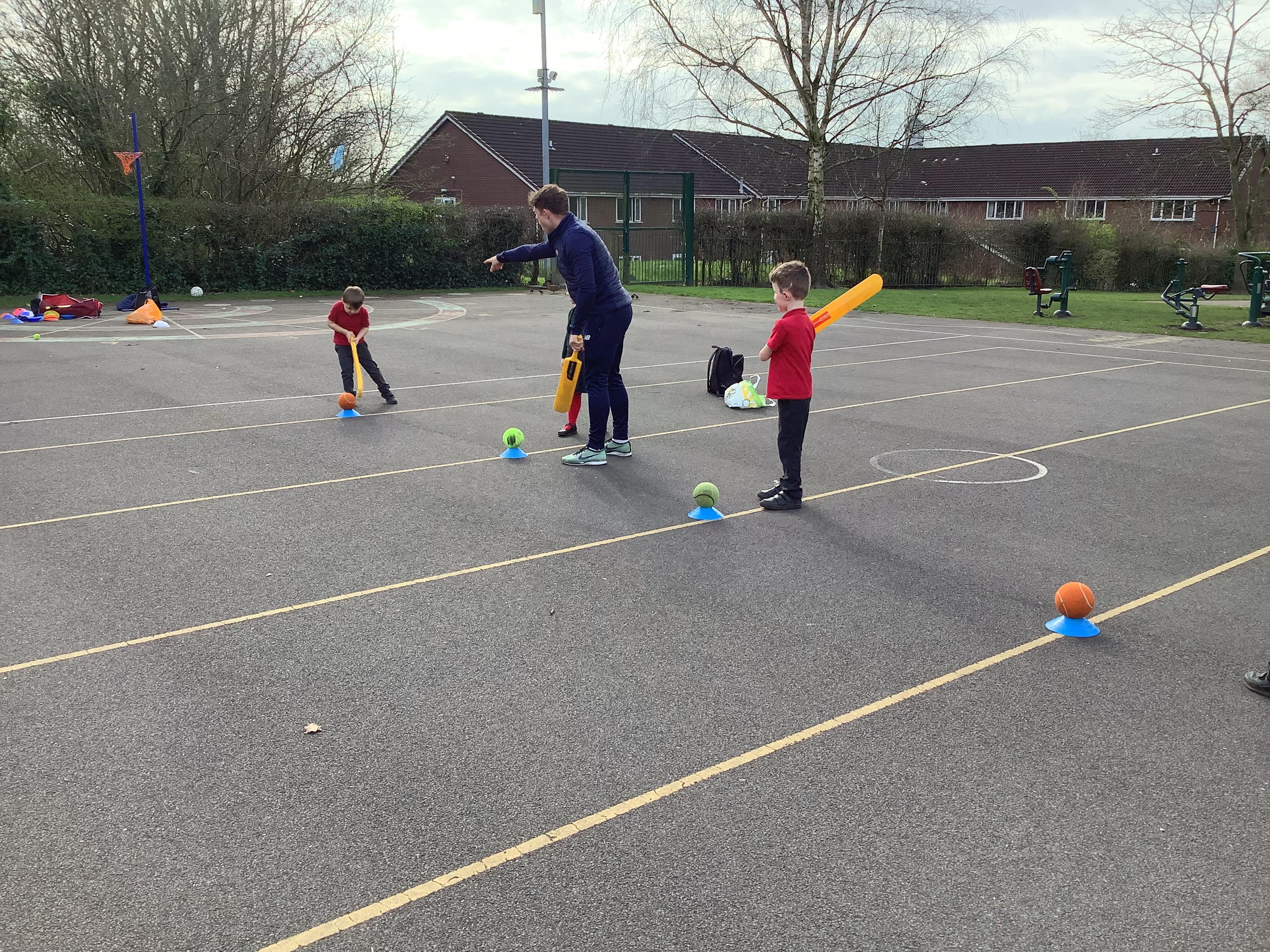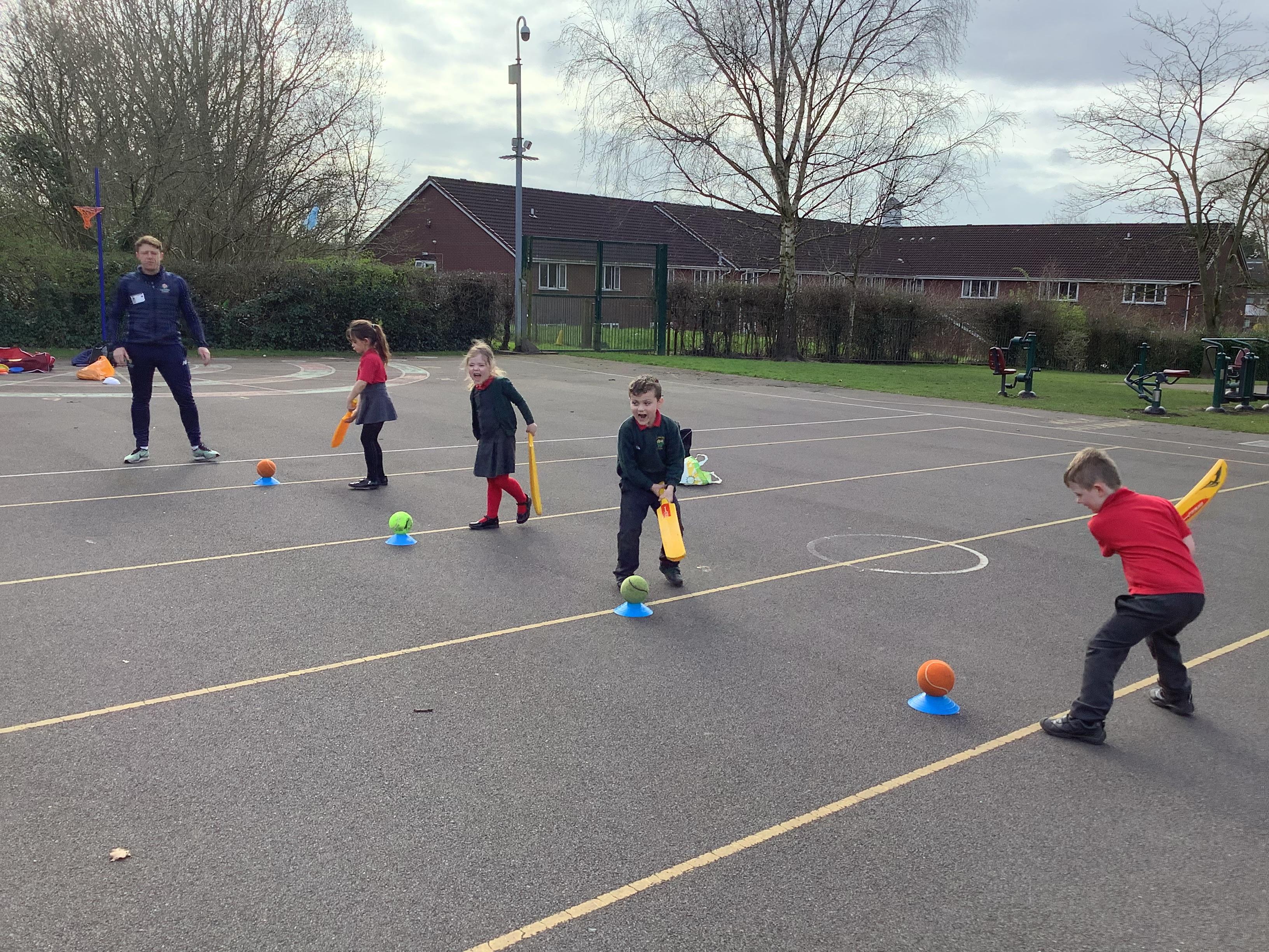 Cricket time! Jordan from Lancashire Cricket spent the day with us teaching all of us how to play cricket!