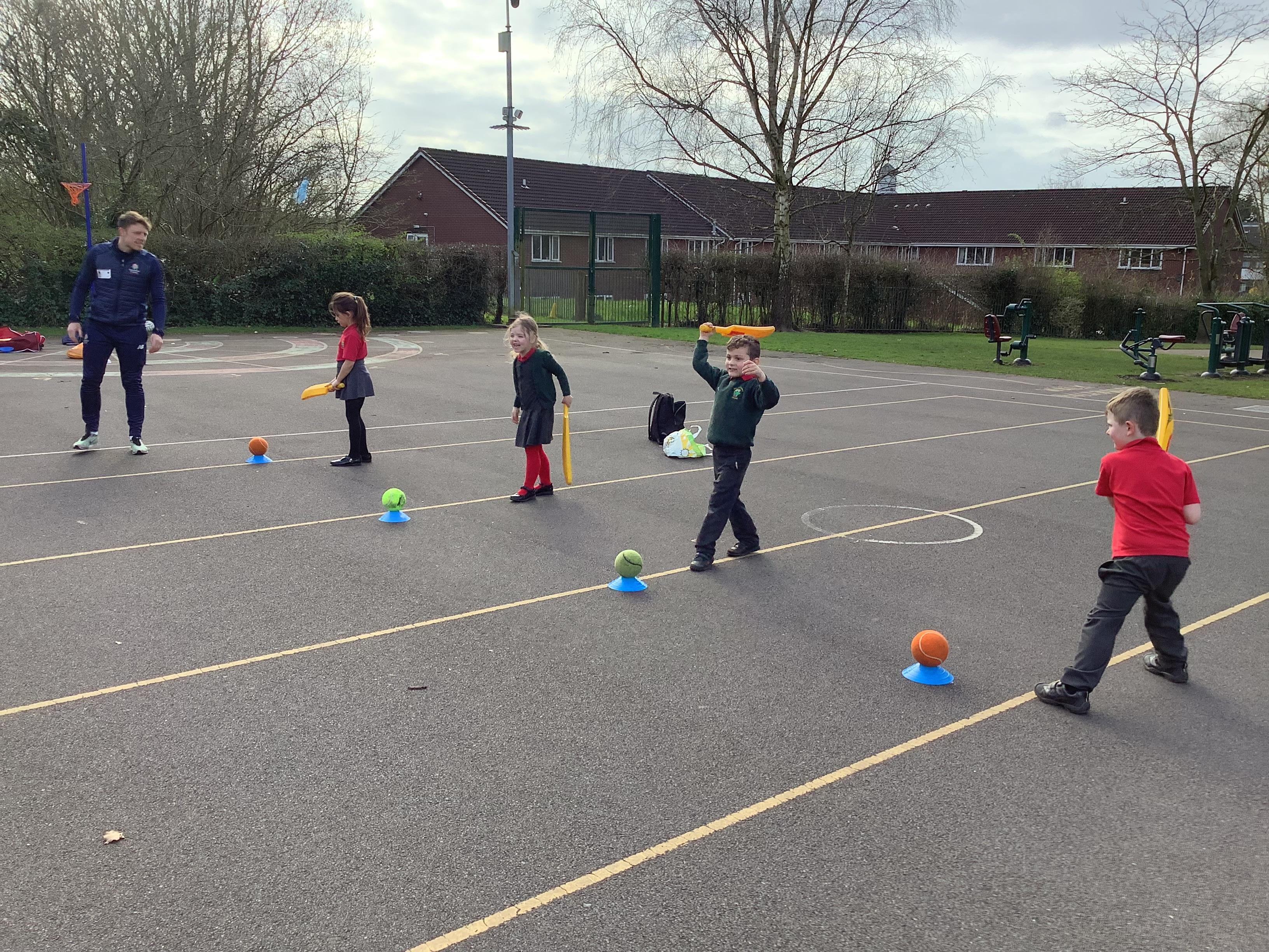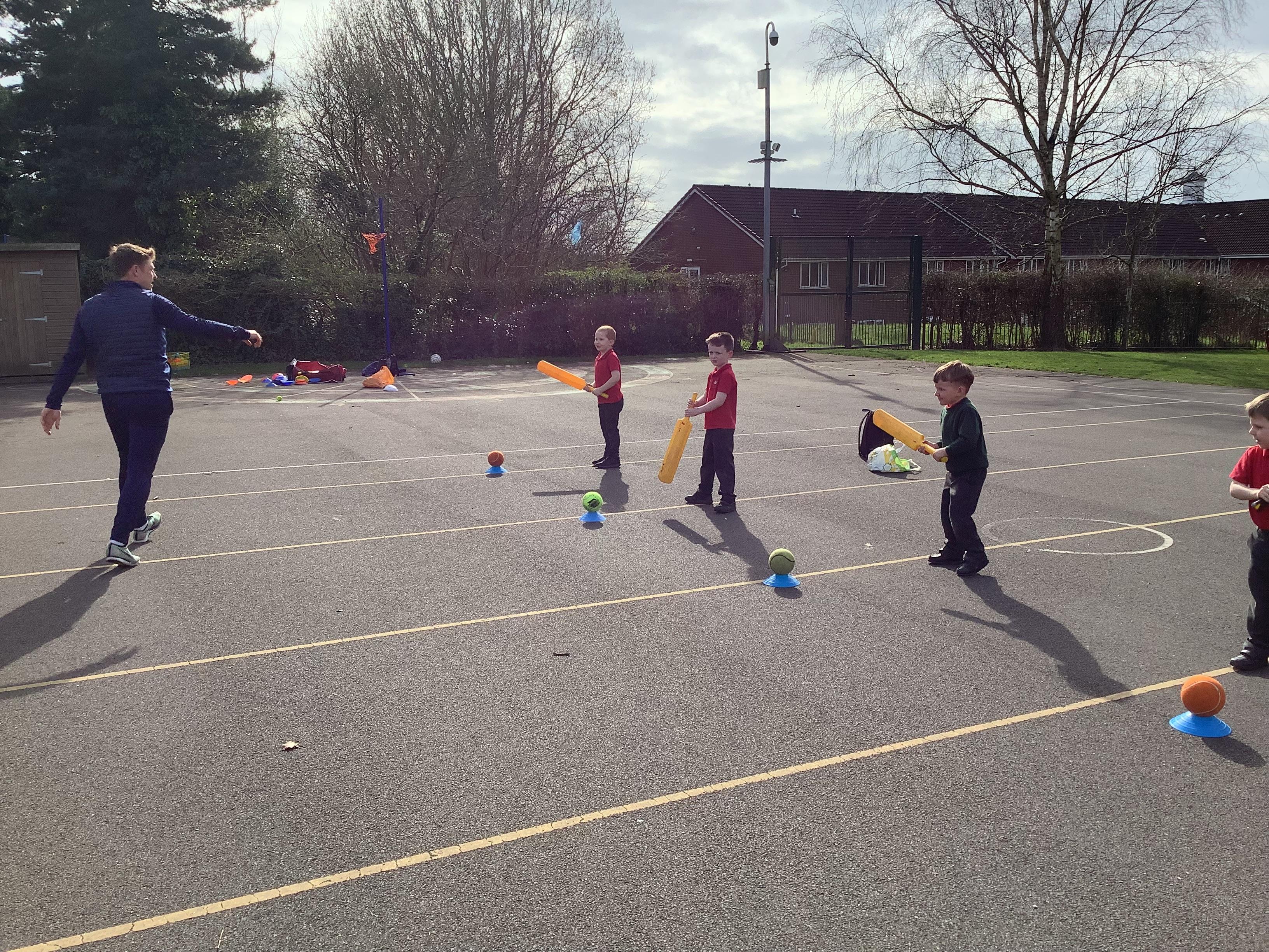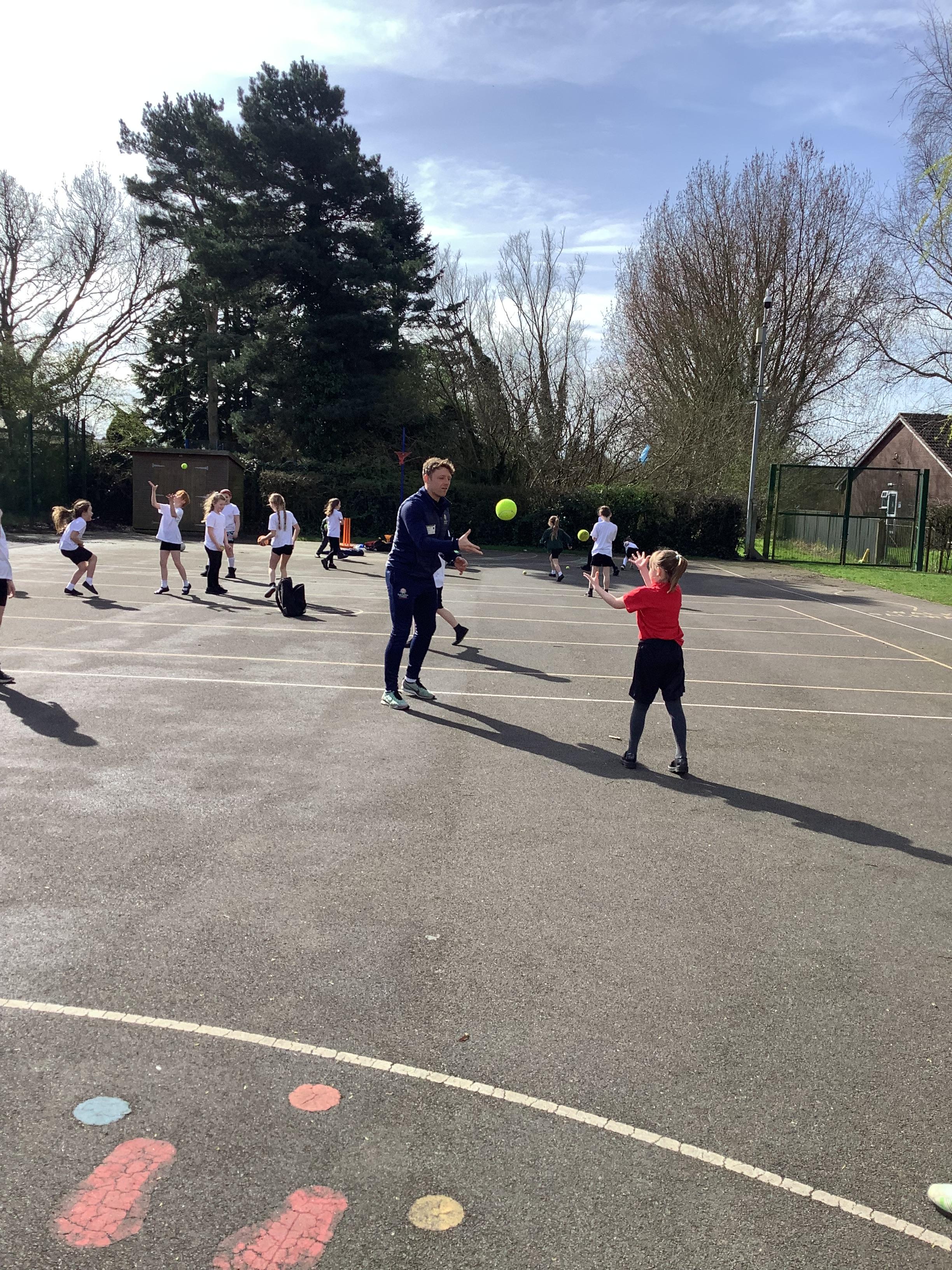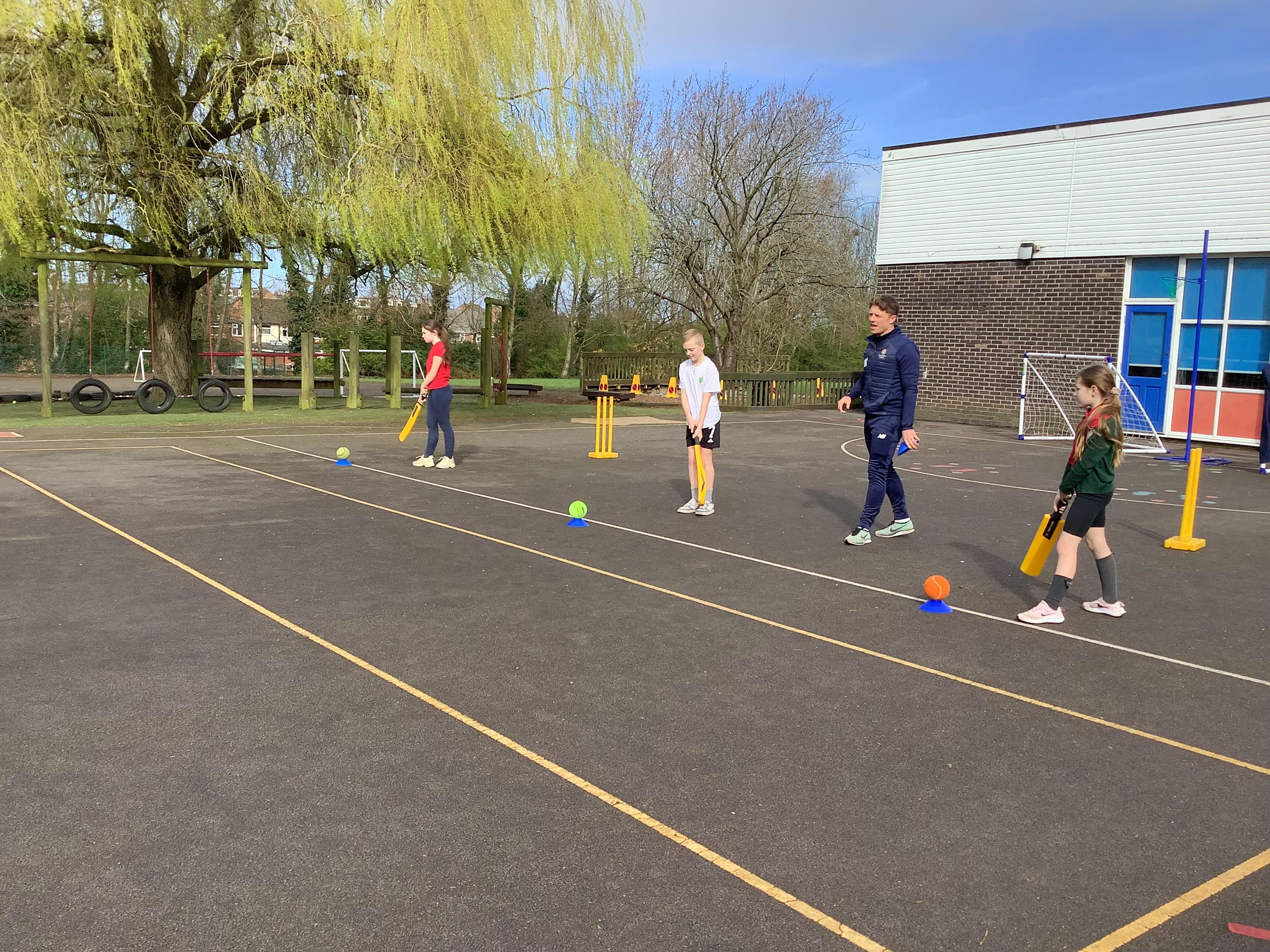 Cricket time! Jordan from Lancashire Cricket spent the day with us teaching all of us how to play cricket!