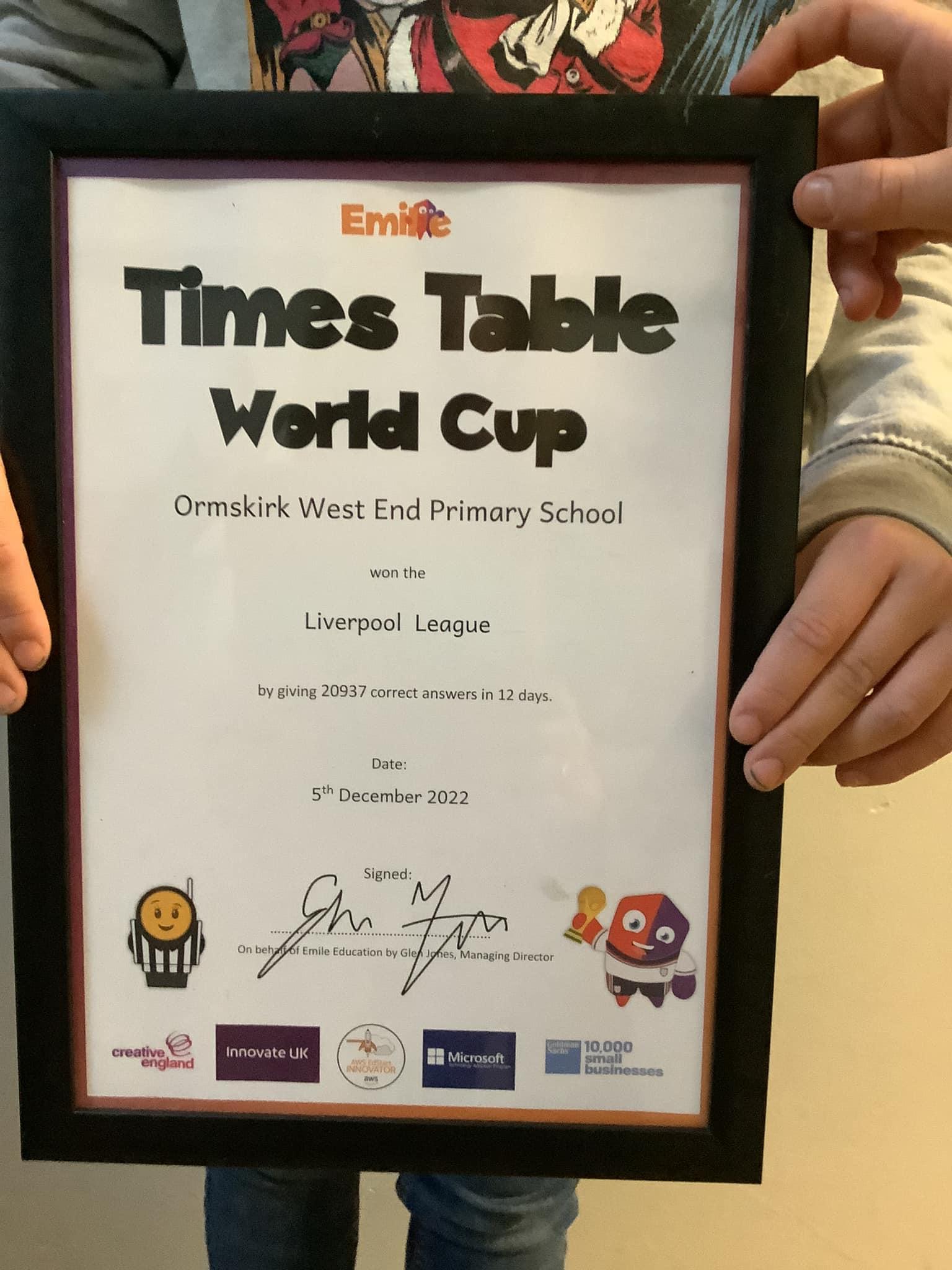 We are champions! Oak and Maple entered the Times Table World Cup and came 8th out of 1000 schools! We are certainly impressed with the determination of our children. #Resilience